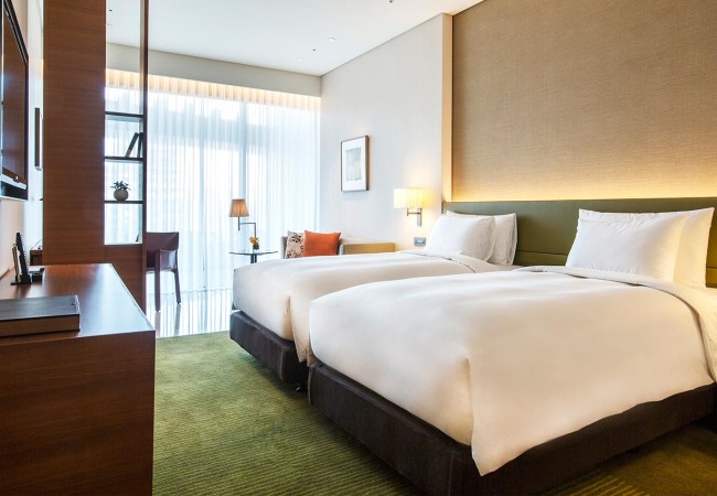 大片落地窗,讓城市盡入眼底,陽台收攏這座城的日夜動靜,吐納13坪的寧靜素雅。市景限定,房型分兩小床或一大床,皆附42吋高畫質電視、DVD播放機、Bose音響設備、光纖上網,Cassina設計皮椅、迷你酒吧、貼心Nespresso咖啡機,加上雜誌區,享受閱讀好時光。